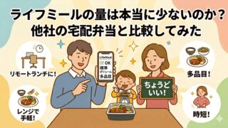 | 弁当宅配食 | ![]() | ライフミール | お弁当 | 大きい | 一食 404円〜530円 | 使うほど安い | 量が少ない | |