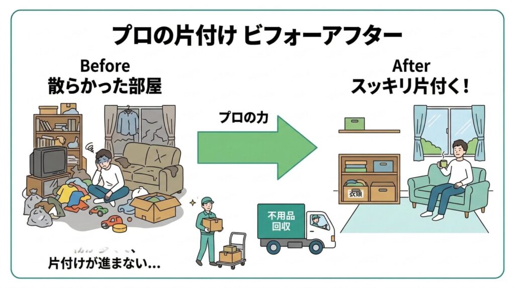「モノを減らして家事の負担を軽くしたい」「でも自分たちで片付ける時間も体力もない」という方は、ぜひプロの力を頼ってみてください。
