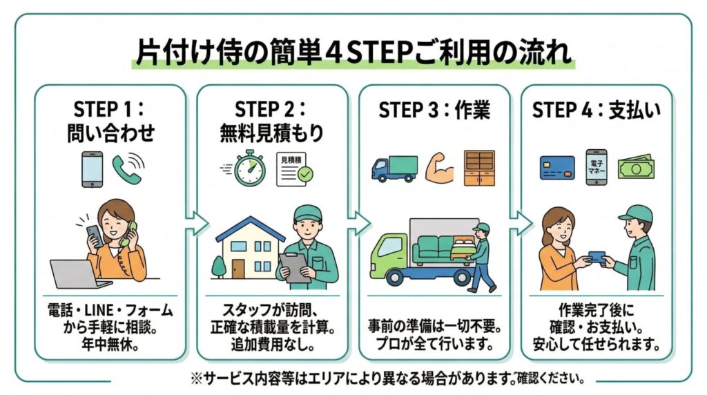 でも安心してください。片付け侍を利用する流れは、驚くほどシンプルに作られています。