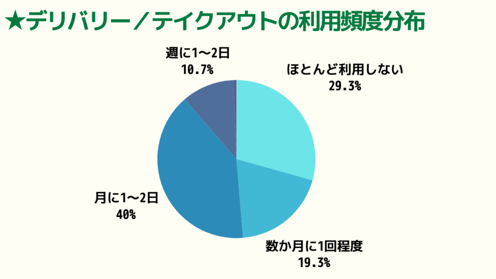 - 宅配サービスは「月に数回」「忙しい時期だけ」といった利用が多い。