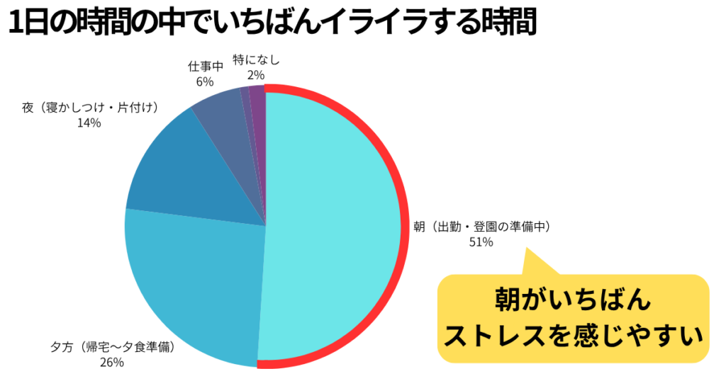 表を見てみると、子どもが未就学期のときは朝がイライラを感じやすいようです。