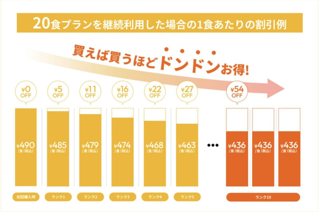 購入数に応じて1食あたり最大◯◯円引き!ランク表まとめ