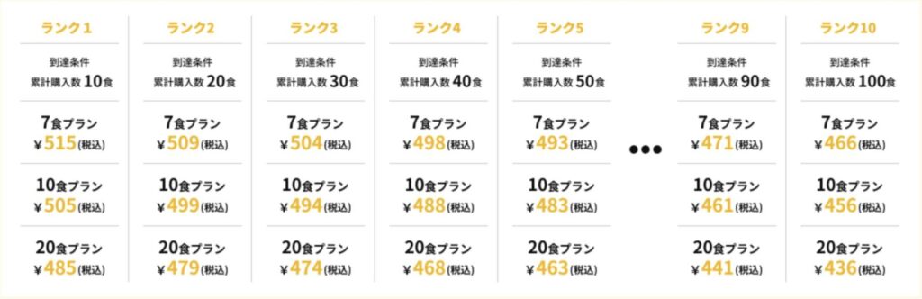 累計の購入食数に応じて、自動的にランクが上がっていきます。