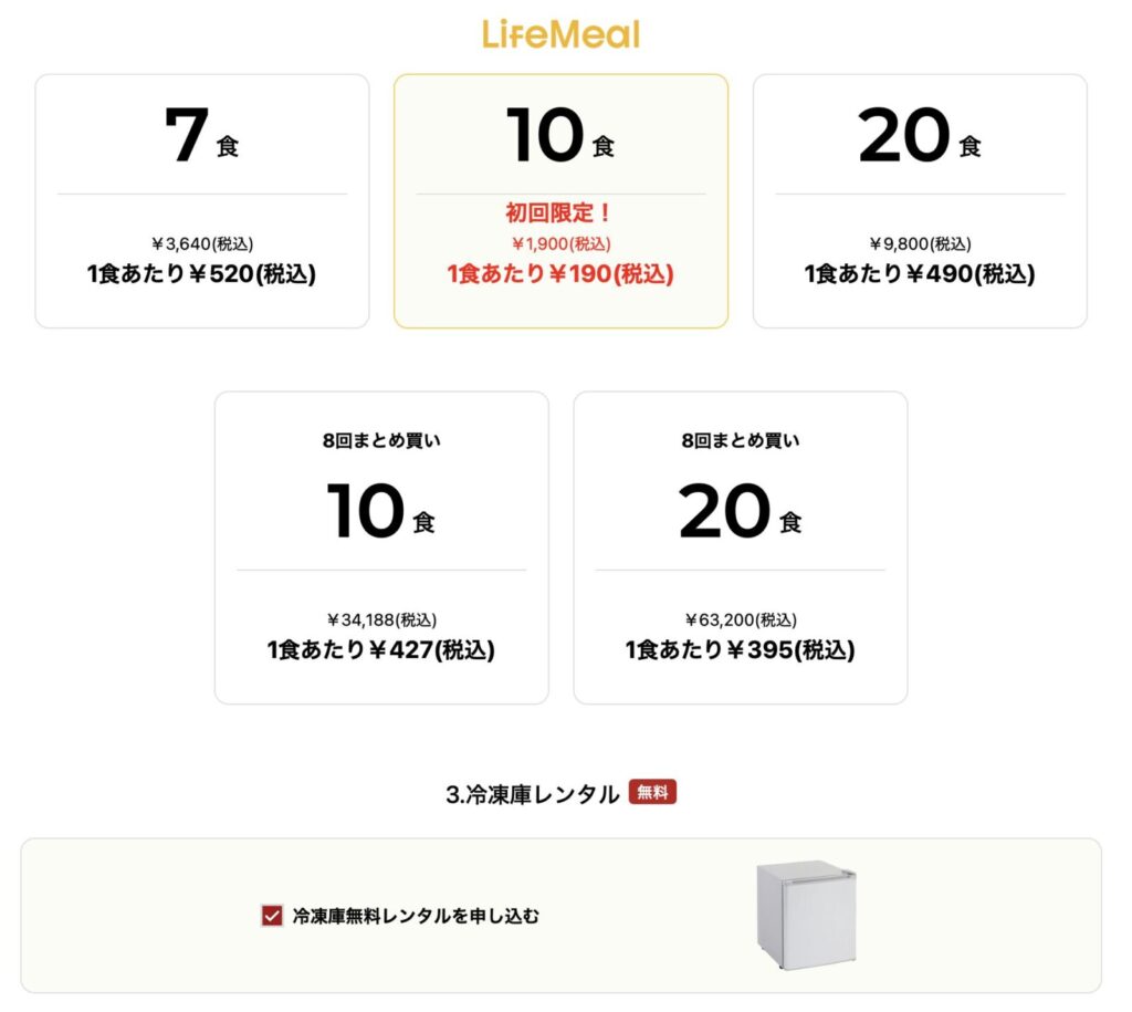 - ライフミール:10食・20食プラン