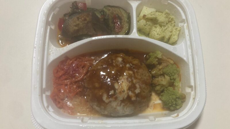 妻がメインで食べたのをちょっともらっただけですが、ハンバーグにつける梅おろしソースがパンチのある味で絶品。2つの主菜はどちらもたっぷりで、ワタミのマックス弁当にふさわしい味と量でした。 pic.twitter.com/7YCRiZPN9q