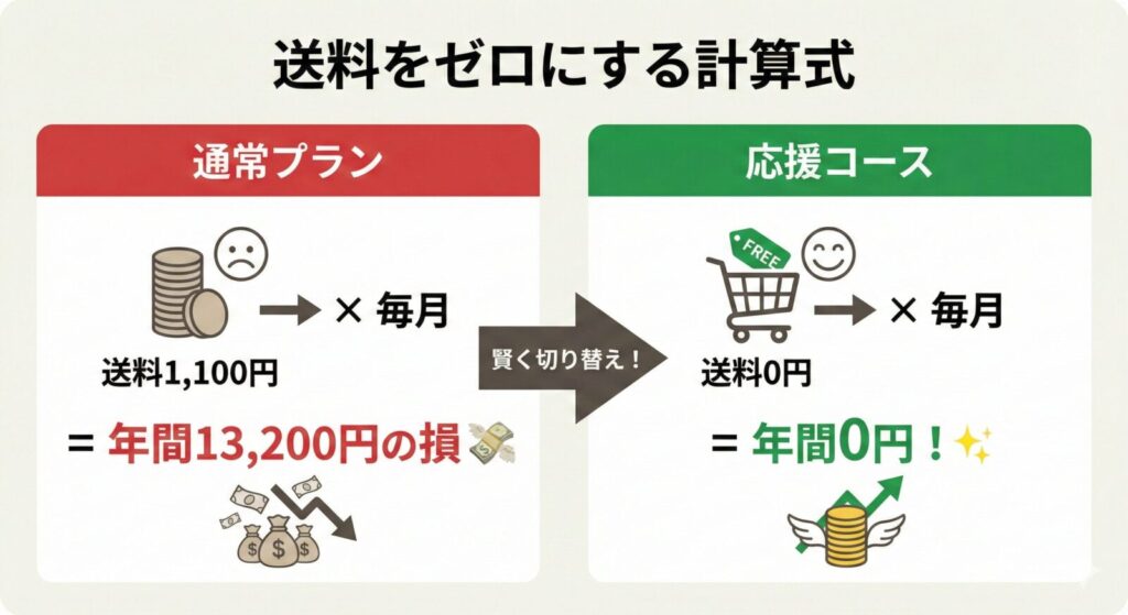 ※年間節約額は、送料1,100円×12回で計算した場合。