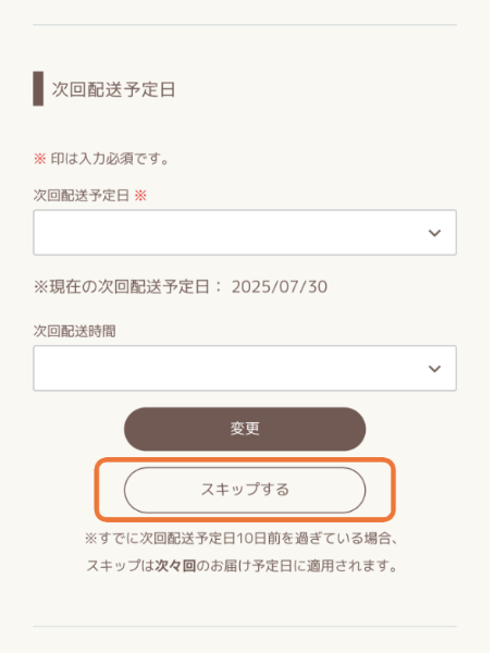 マイページから簡単に「スキップ(1回お休み)」や配送間隔の変更ができます。 無理に急いで消費する必要はありません。 冷凍庫のスペースや、お子さんの食べるペースに合わせて自由に調整してみてくださいね。