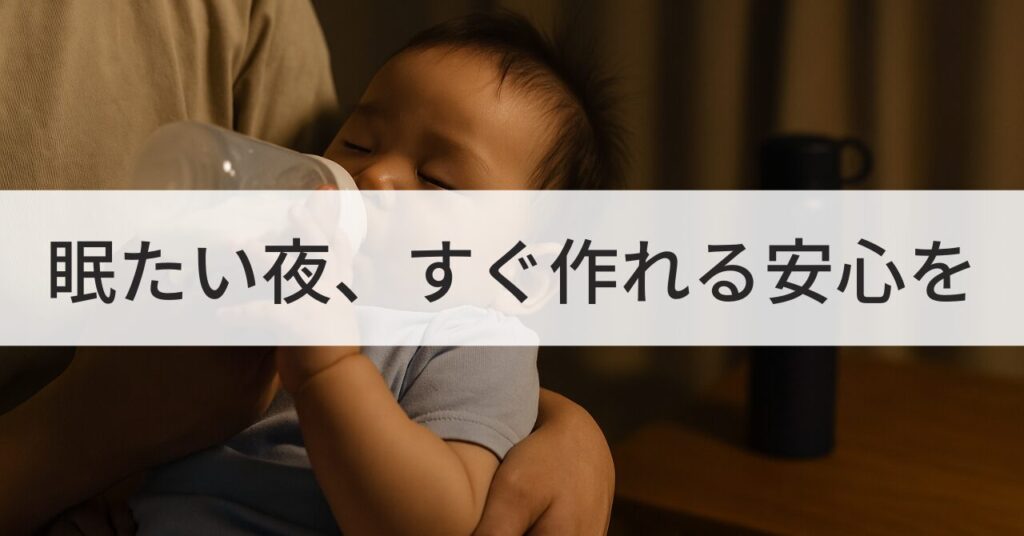 赤ちゃんが夜中に泣いたとき、急いでお湯を沸かし、粉ミルクを計って、適温に調整して…