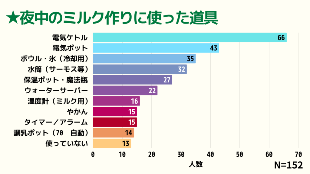 調査の詳細が知りたい方はこちらの記事を参考にしてください。【152人に聞いた!】夜中のミルクをラクにする方法を徹底分析!