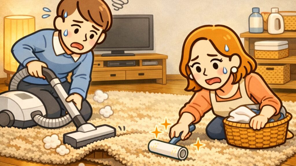 カーペットって結局、「洗う・干す・乾くまで気を遣う」で手間が増えやすいんですよね。