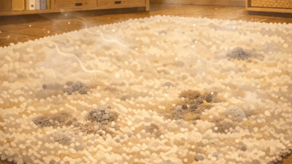 とくに毛足の長いタイプは、表面はきれいに見えても内部にゴミやダニがたまりやすく、「見えない汚れ」が溜まる構造になっています。
