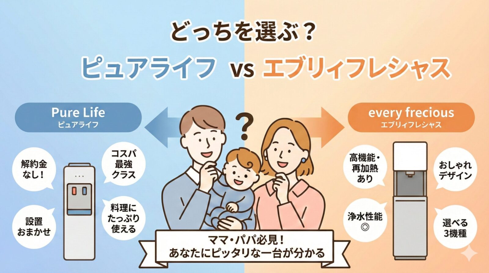 いざ選ぼうとすると「ピュアライフ」と「エブリィフレシャス」どっちがいいのか迷いますよね。