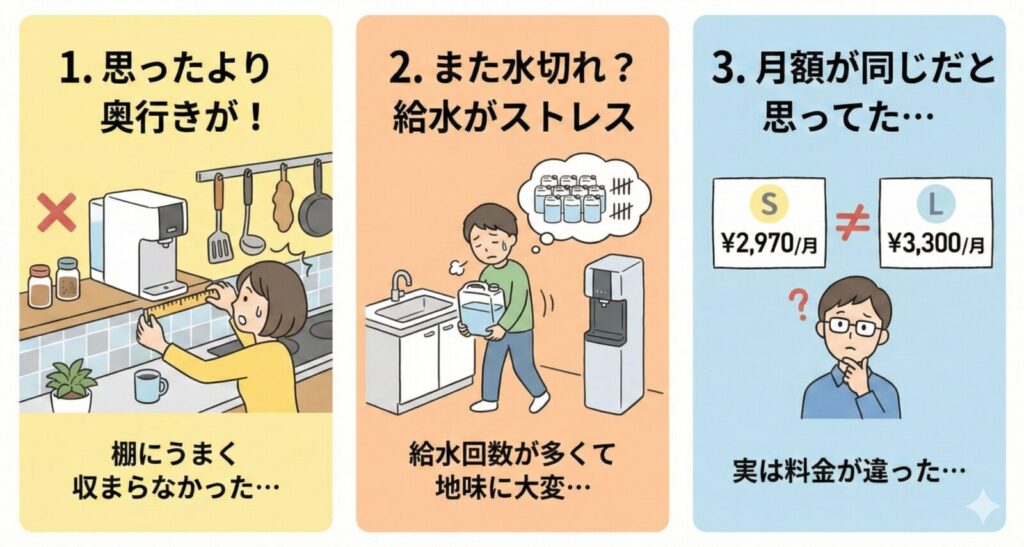 でも「失敗した…」が起きるのは、だいたい置き場所の測り忘れか、給水の手間を甘く見たときです。