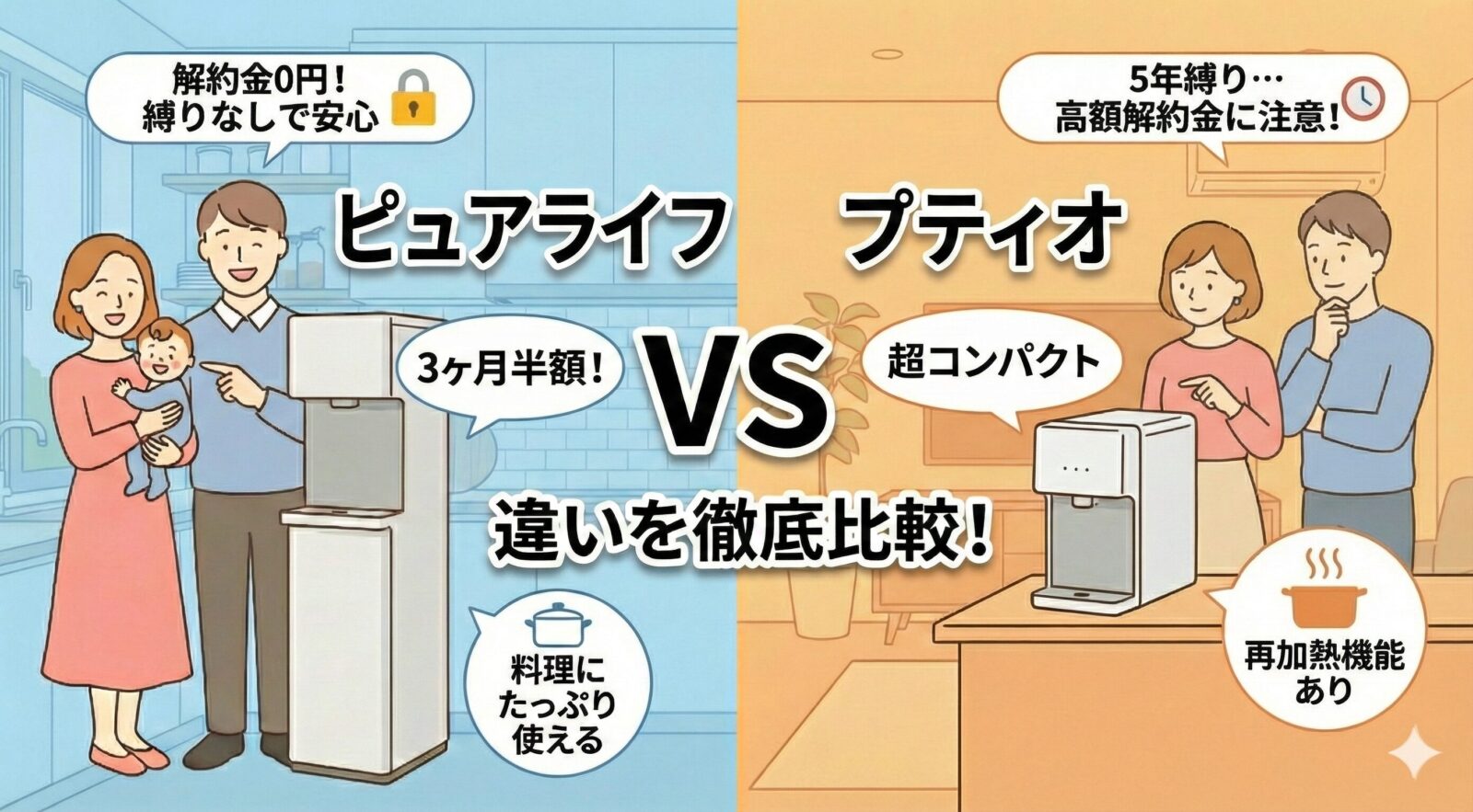 ピュアライフは、初期費用や解約金のリスクがないため、初めてウォーターサーバーを導入するご家庭にもピッタリの選択肢です。