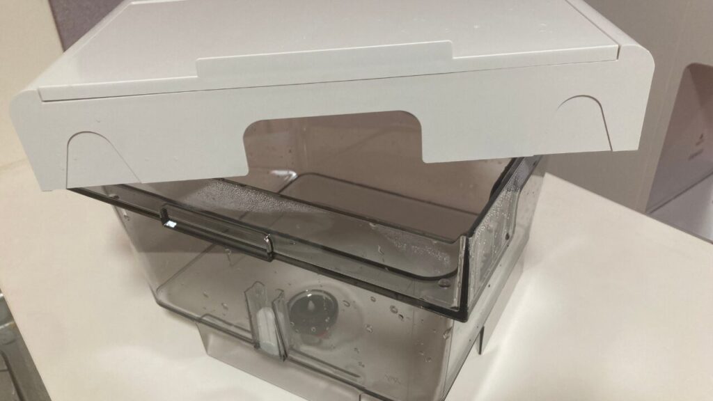 - 給水タンク(4.5L): 私たちが水道水を入れる、上の透明なタンク。