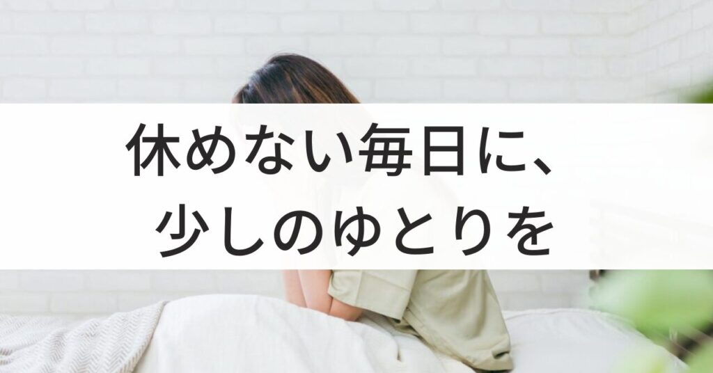 無理なく生活に取り入れられる仕組みを通して、少しでも自分の時間と体力を取り戻すヒントになれば幸いです。