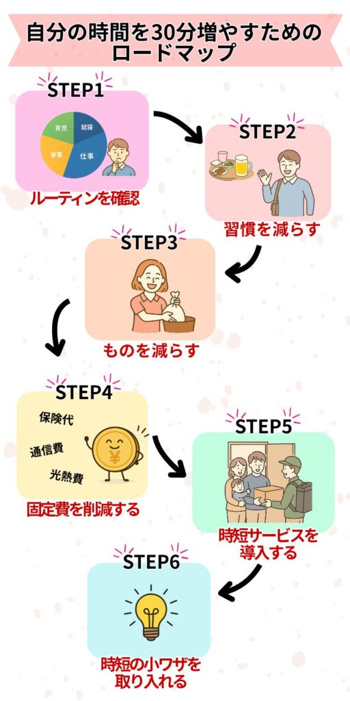 【6ステップで解説】共働き×子育て中に自分の時間を30分増やすためのロードマップ