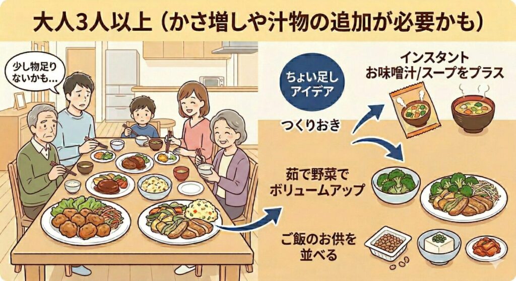 大人3人以上(かさ増しや汁物の追加が必要かも)