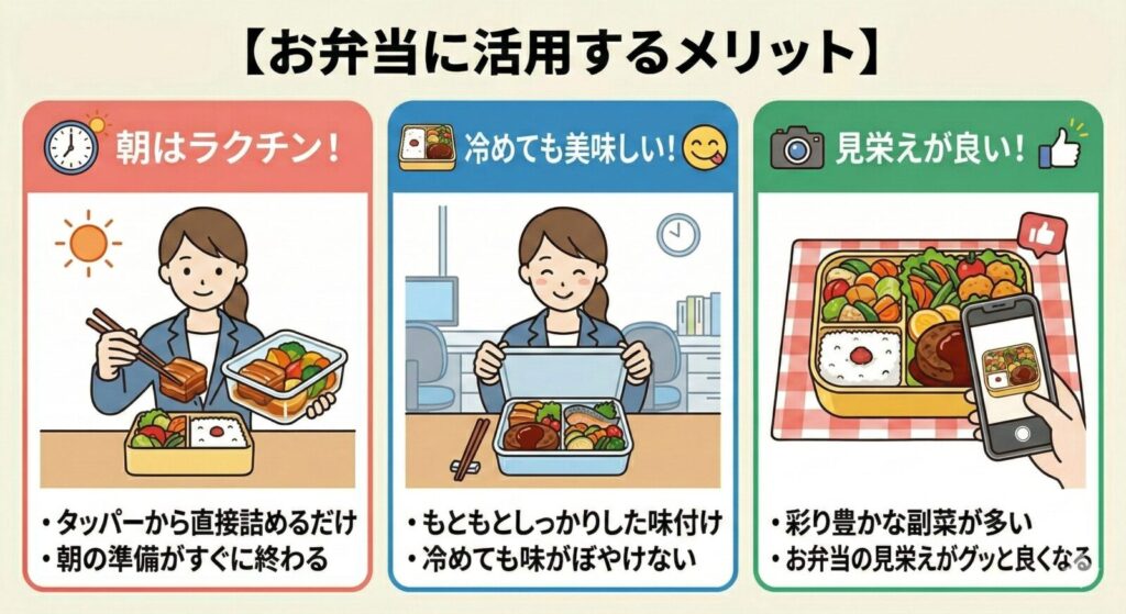 夕食の準備だけでなく、お弁当作りの手間まで省けるのは本当に助かります。