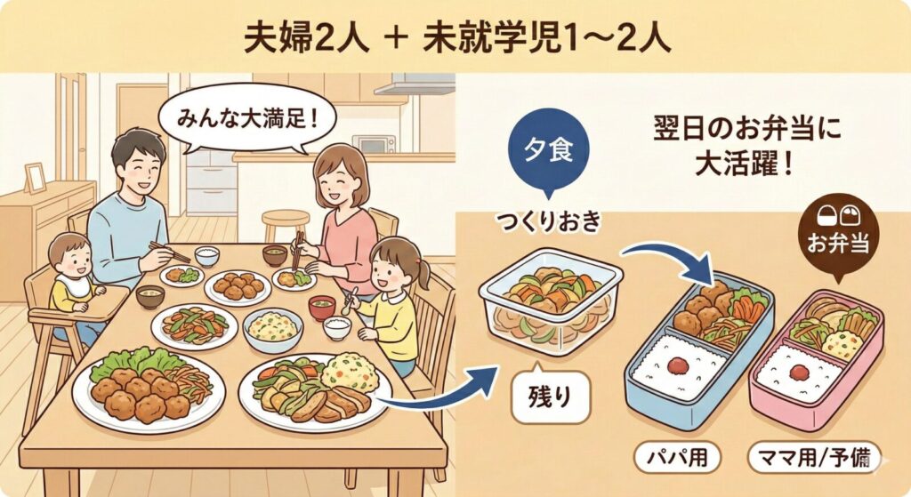 つくりおき.jpが公式に想定しているターゲット層が、まさにこの家族構成です。