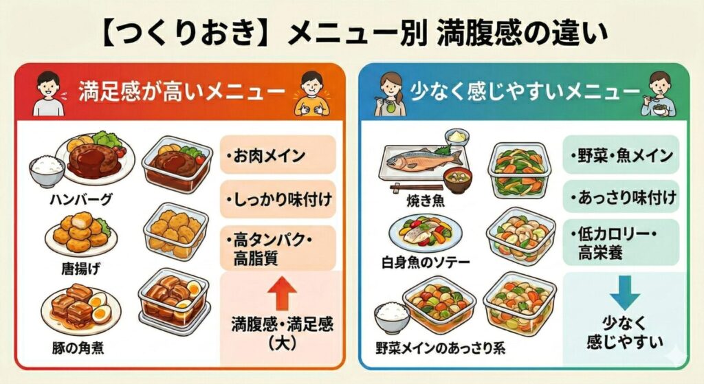 同じグラム数のおかずでも、食材や調理法によって食べた時の満腹感は大きく変わるかもしれません。