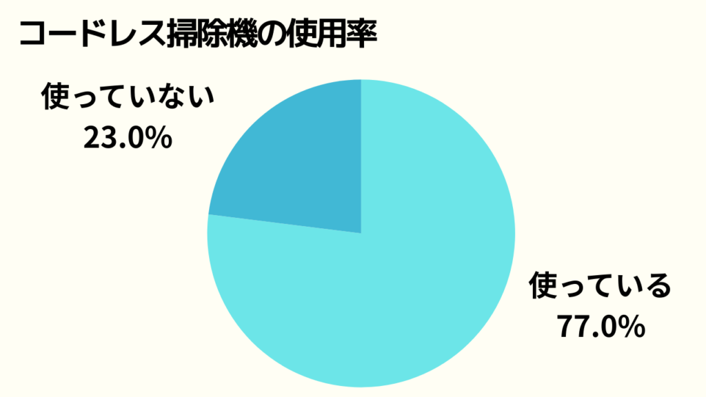 一方で、コードレス掃除機は、使っている家庭が77.0%と多数派でした。