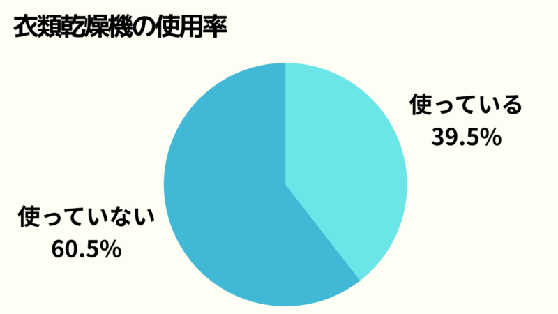 衣類乾燥機は、使っていない家庭が60.5%と、まだ未導入の家庭がやや多い状況でした。