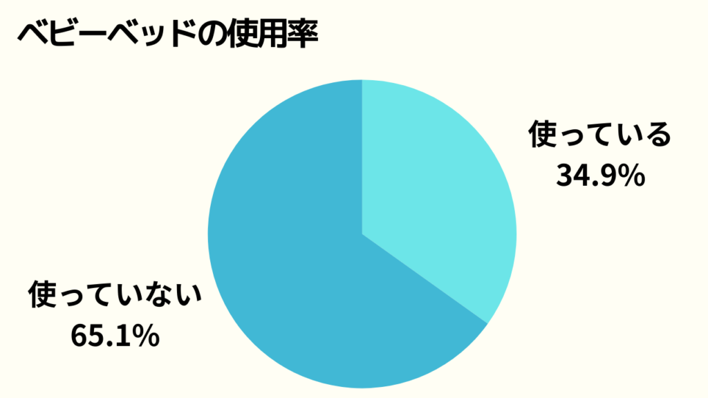 ベビーベッドは、使っていない(使っていなかった)家庭が65.1%と、約3分の2を占めました。