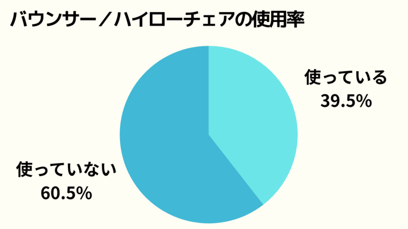 バウンサー/ハイローチェアは、使っていない家庭が60.5%とやや多数派でした。