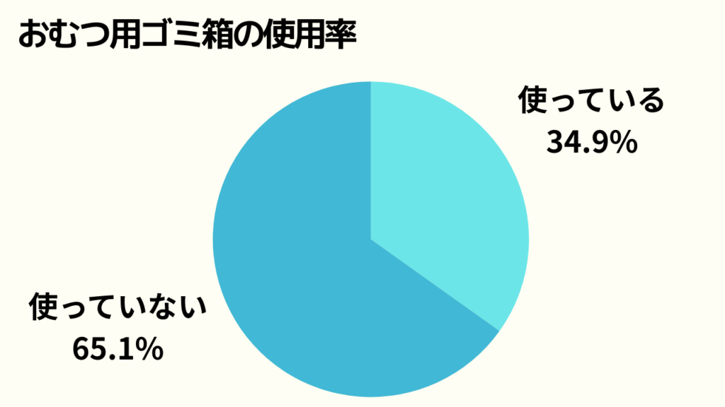 おむつ用ゴミ箱は、使っていない家庭が65.1%と多数派でした。