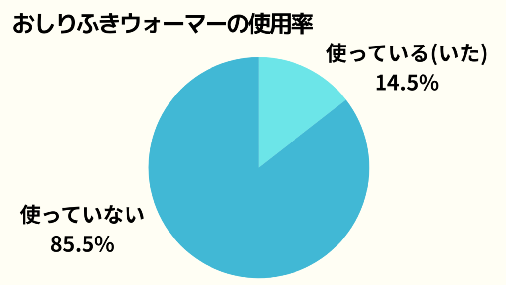 おしりふきウォーマーは、使っていない家庭が85.5%と、今回の調査の中でも「未使用派」がかなり多いアイテムでした。