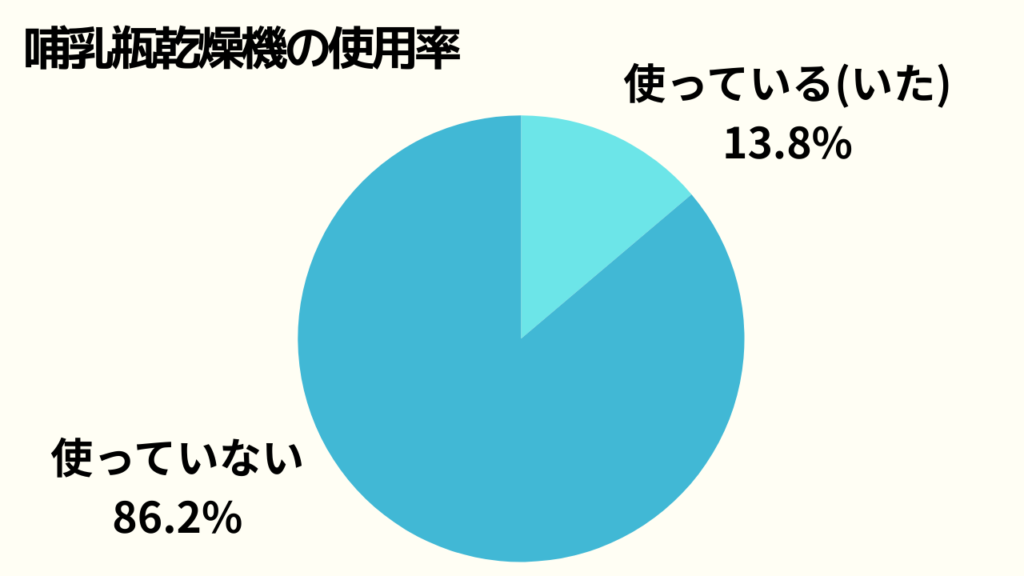 哺乳瓶乾燥機は、使っていない家庭が86.2%と大多数でした。